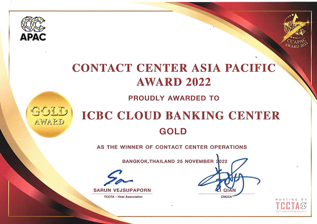 中國工商銀行遠(yuǎn)程銀行中心榮獲2022年度亞太客戶中心運(yùn)營管理大獎(jiǎng)-金獎(jiǎng)。